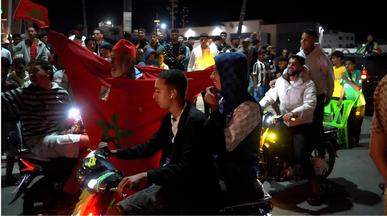 ما أن أعلن الحكم عن نهاية المباراة، حتى توافدت الجماهير العاشقة لكرة القدم أطفالا وشبابا ونساء ورجالا إلى أبرز ساحات “لؤلؤة الجنوب” وشوارعها الرئيسية وسط أجواء من الاحتفالية والحماس منقطعة النظير. حاملين الأعلام الوطنية، ومرتدين قمصان المنتخب الوطني، أبدعت الجماهير في رسم لوحات احتفالية رائعة على متن السيارات التي أطلقت العنان لأبواقها أو الدراجات النارية أو مشيا على الأقدم، لتجوب مختلف أحياء المدينة احتفاء بتتويج تاريخي لكرة القدم المغربية التي دخلت العالمية من بابها الواسع.